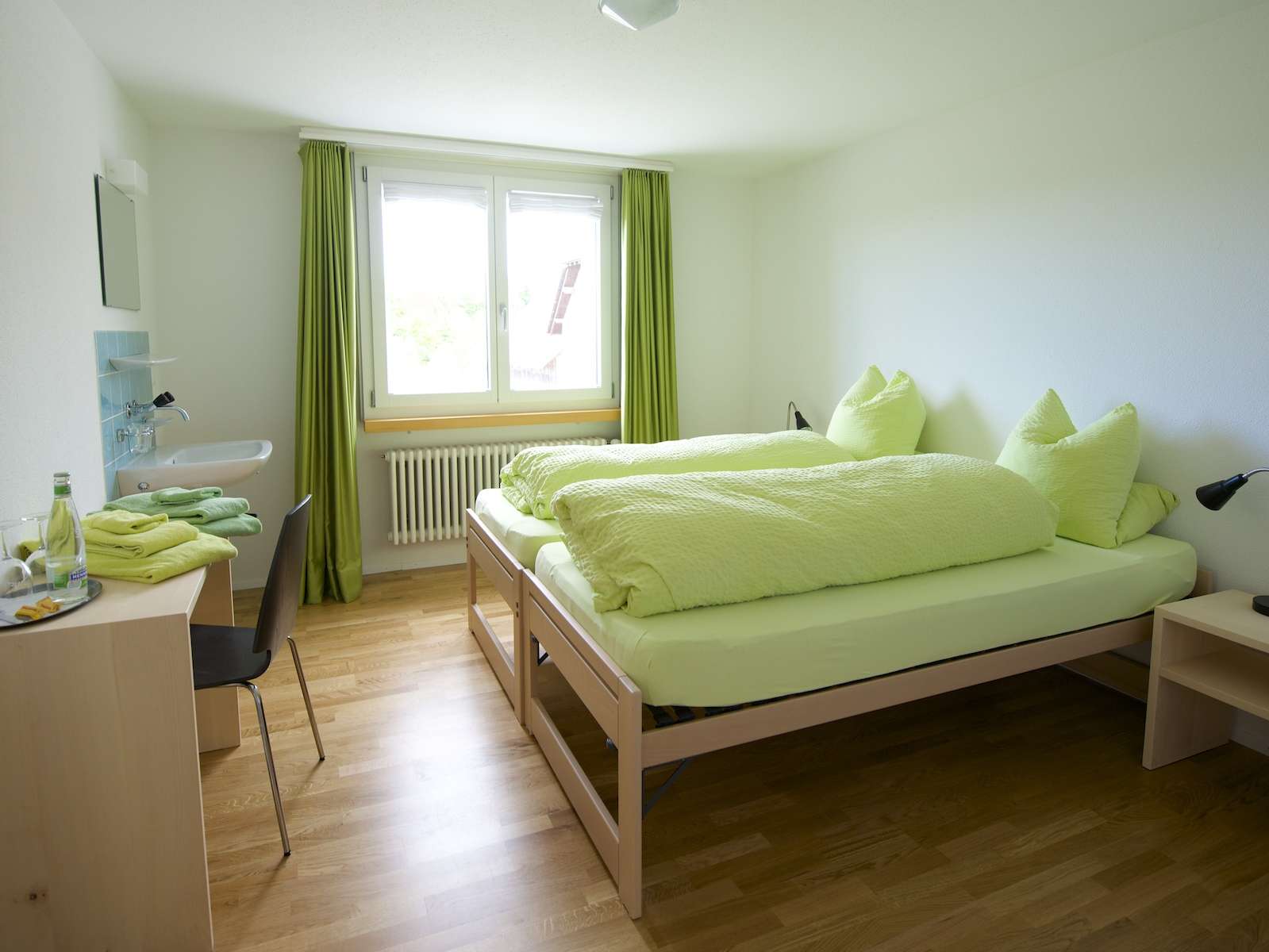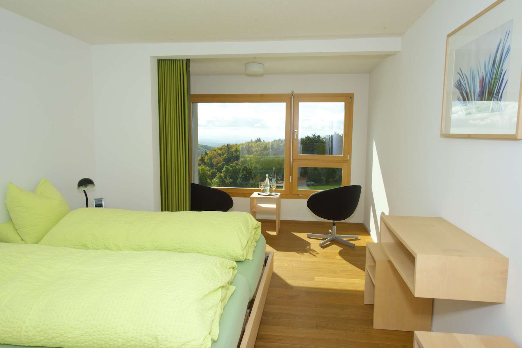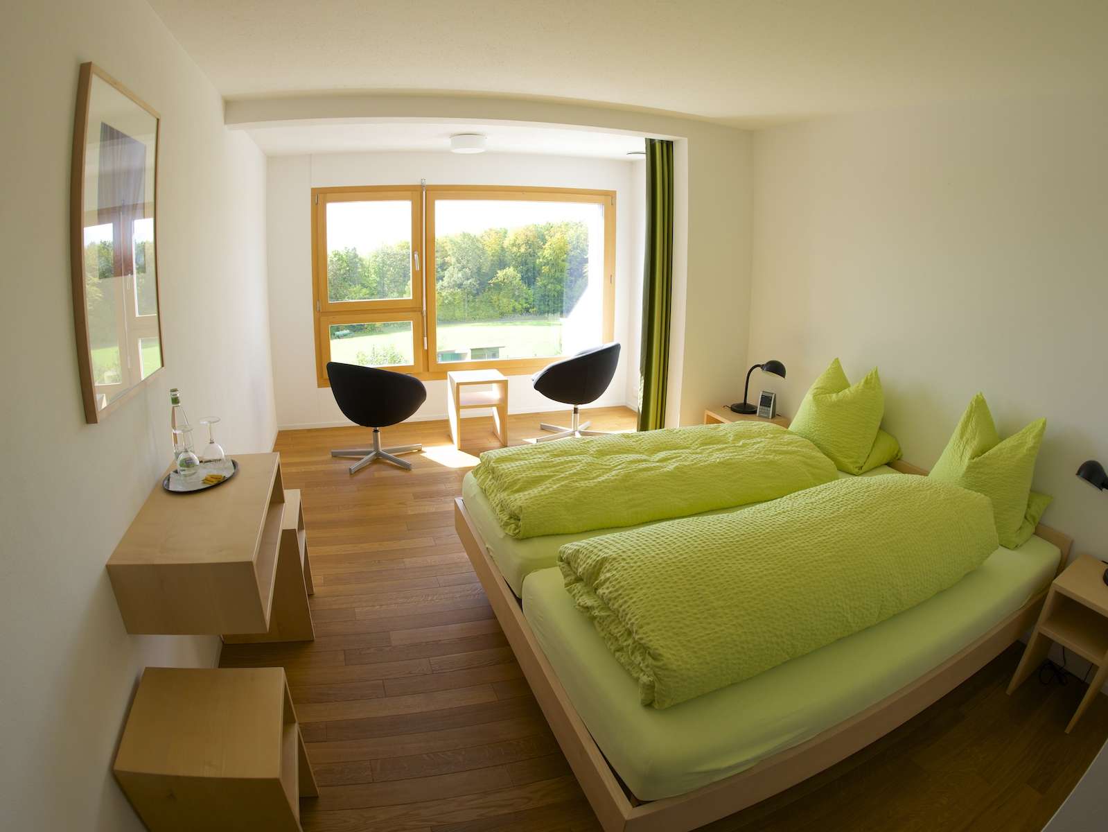 Die geschmackvoll renovierten, hell und stimmig ausgestatteten Gästezimmer mit Möbeln aus Ahornholz vom Randen laden Sie ein, einige harmonische Ferientage inmitten der Natur zu verbringen oder auch einmal spontan nach genossenem Essen bei uns zu übernachten. Erleben Sie einen eindrucksvollen Sonnenaufgang und die herrliche Sicht über ein weites Alpenpanorama.